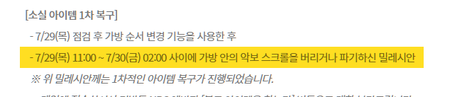 1차 임시 점검 후 어느 정도 잠잠해지는 듯 보였으나, 아이템이 사라지는 이슈는 명백히 라이브에 잔존한 상태였습니다. 아마 이슈의 원인이 되는 사전 조건에 해당하는 유저 대부분이 이미 아이템 분실을 겪었기 때문에 추가 발생은 하지 않는 상황이었을 겁니다.
