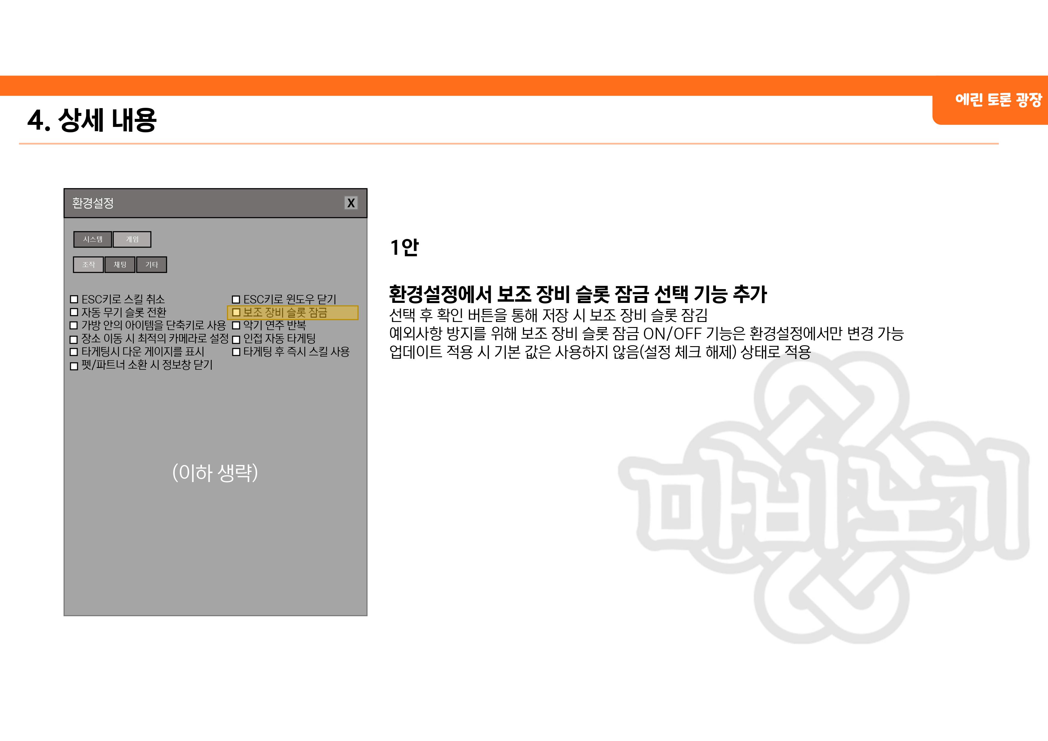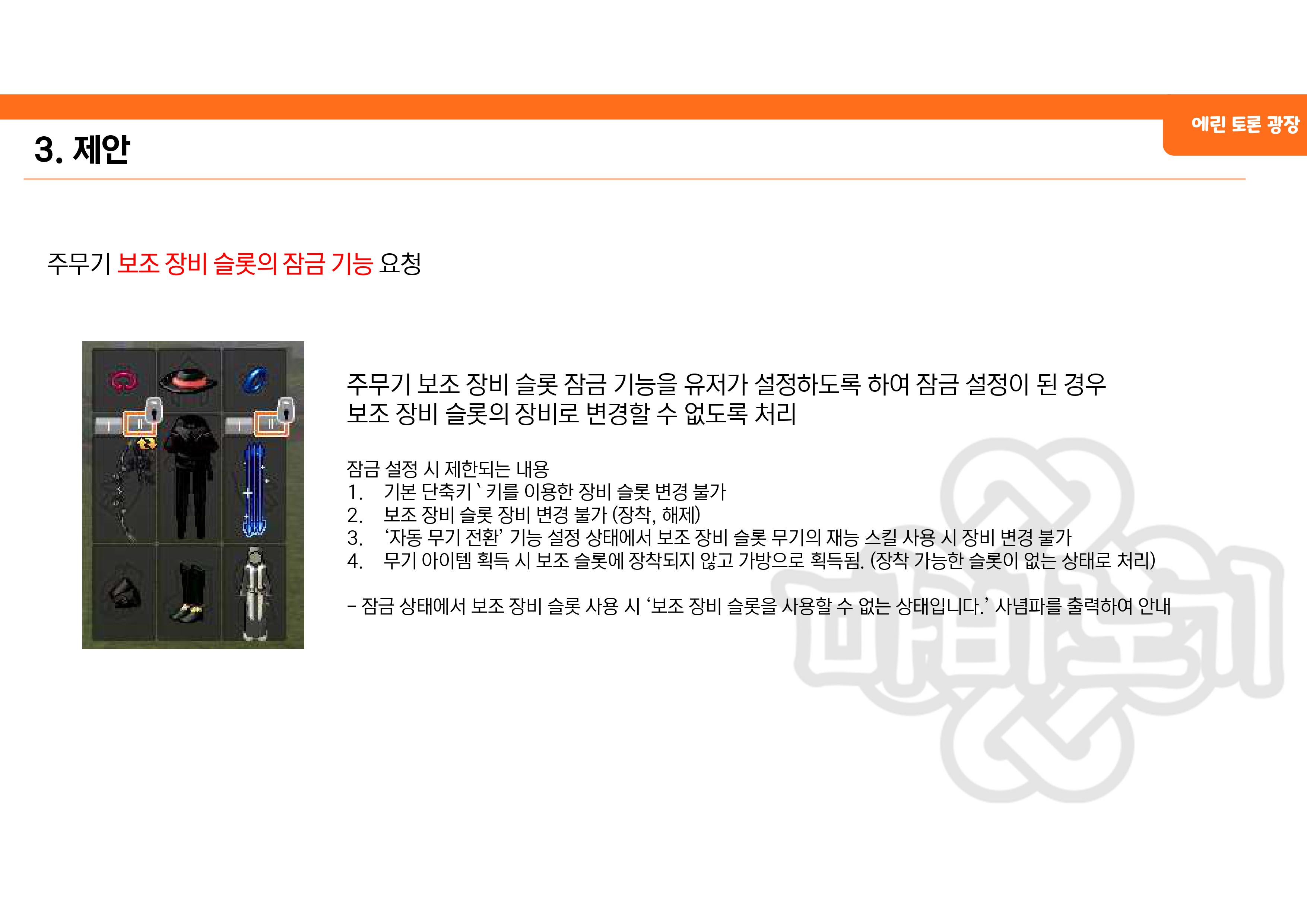 4. 없앨 수는 없으니 보조 장비 슬롯 잠금 기능을 추가하면 좋을 것 같은데 어떰?