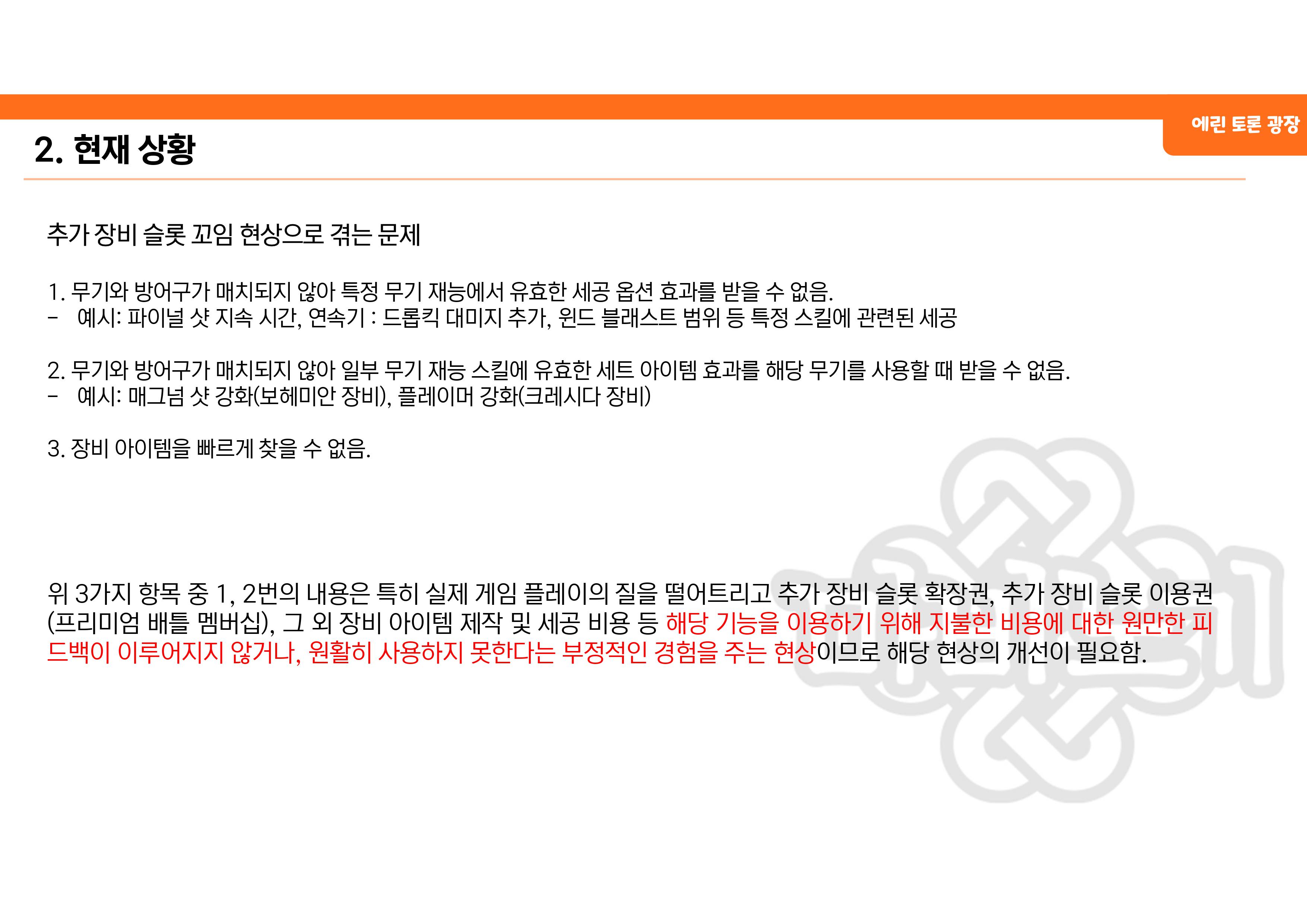 2. 추장슬이 꼬여서 사용자가 의도한대로 장비세트가 입혀지지 않고 꼬임 현상 풀기 번거로움
